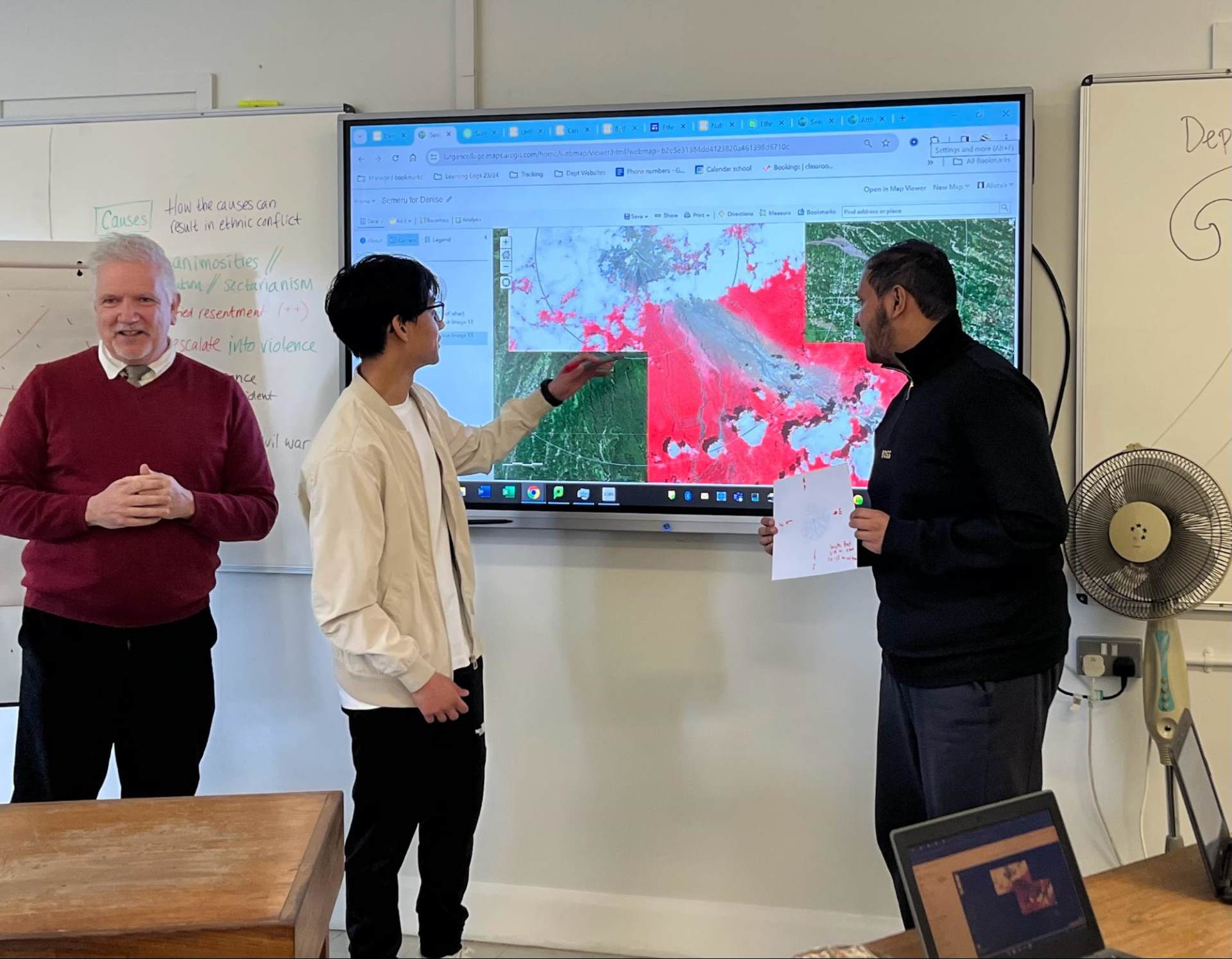 The sun came out on Wednesday and we had a full but very rewarding day. In the morning year 12 spent time at Lurgan College, working with local students to learn more about GIS, tectonics, and geographies of identity. The Head of Geography at the college, Alistair Hamill, then took our students on a walking tour of Belfast, during which many students collected data for their NEAs.